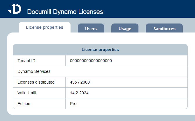 For Production organizations, licenses are managed in the License Manager (more information below). Each organization is granted one admin access to the License Manager during the onboarding process. If your organization does not have an admin access to the License Manager, or it is unsure who owns the account, contact Documill support.