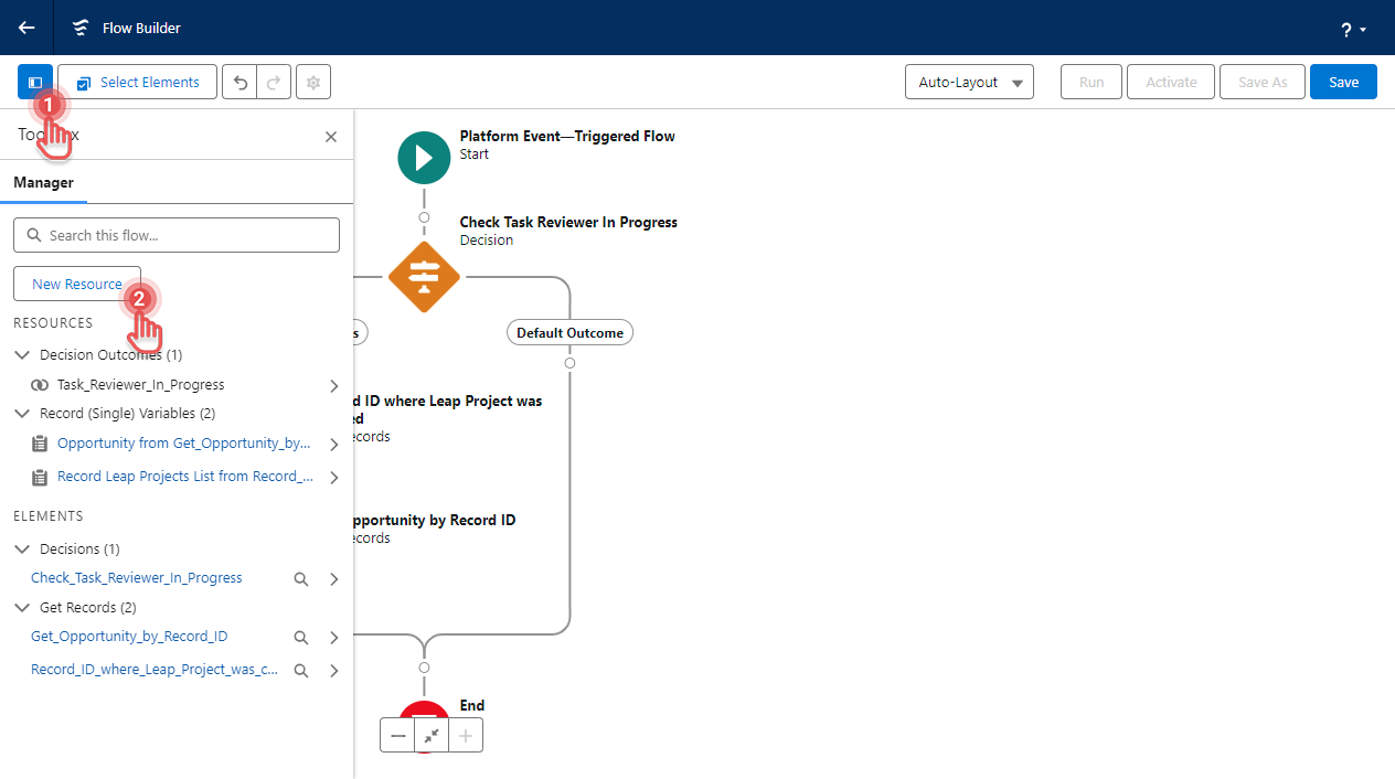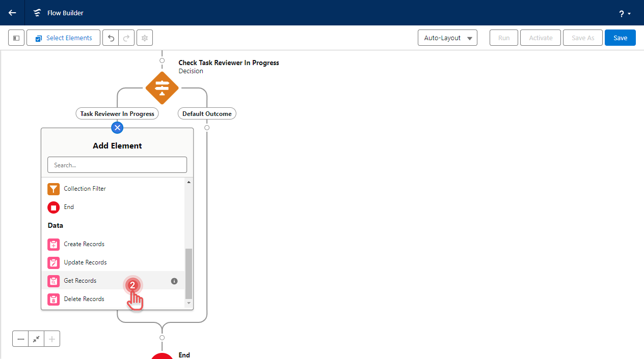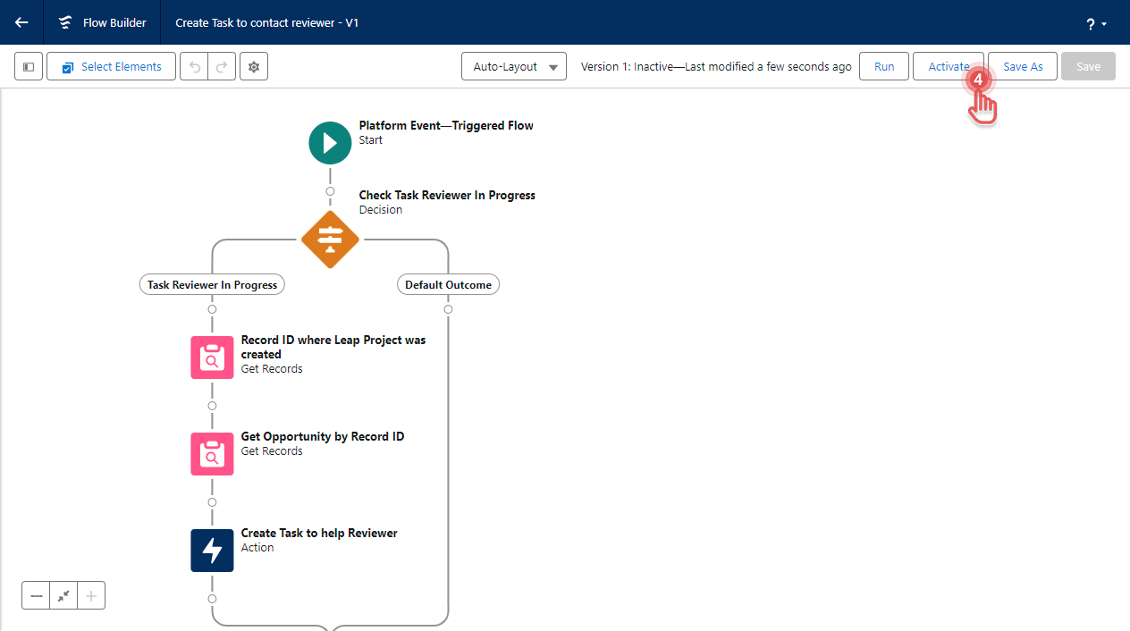 The Decision element now controls how the Salesforce Flow will run according to the conditions we set.