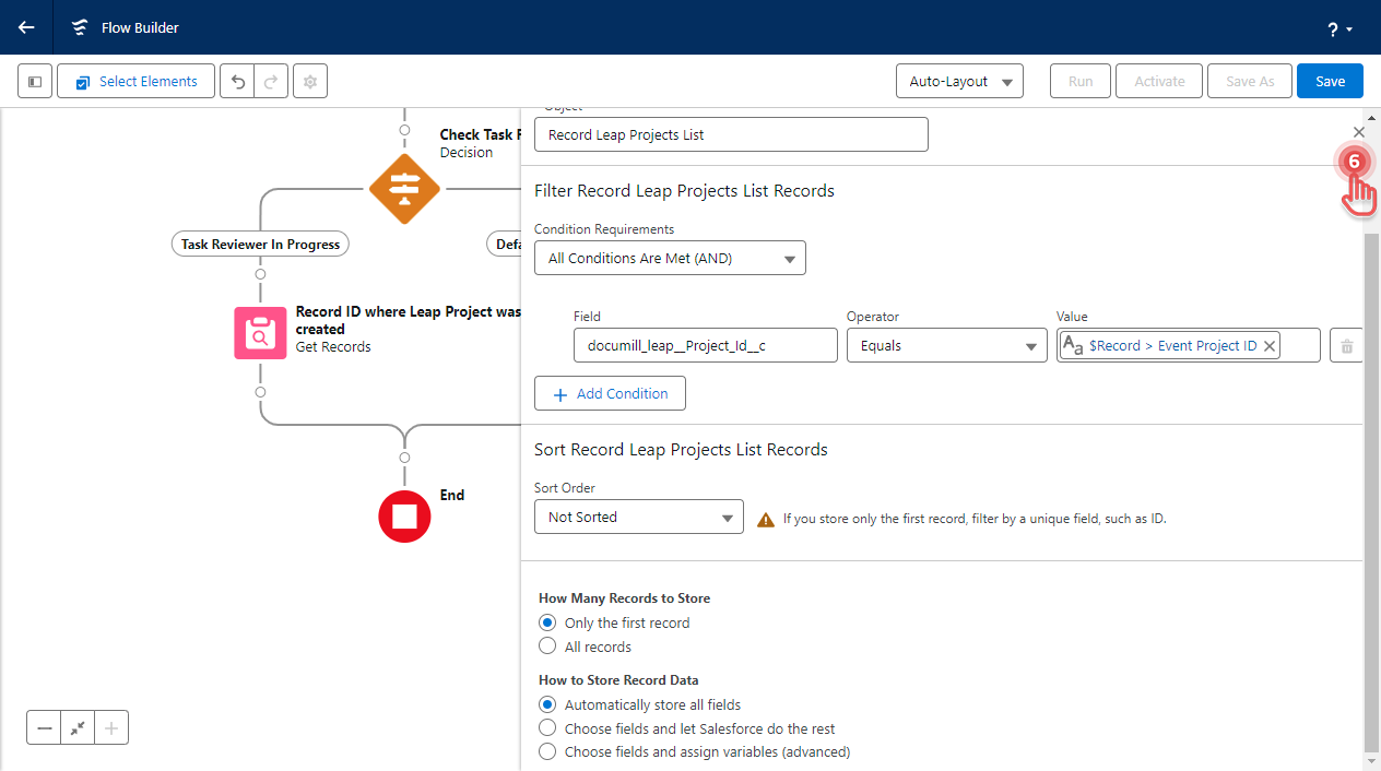 Created a Salesforce Flow that is triggered by Documill Leap Project Event.