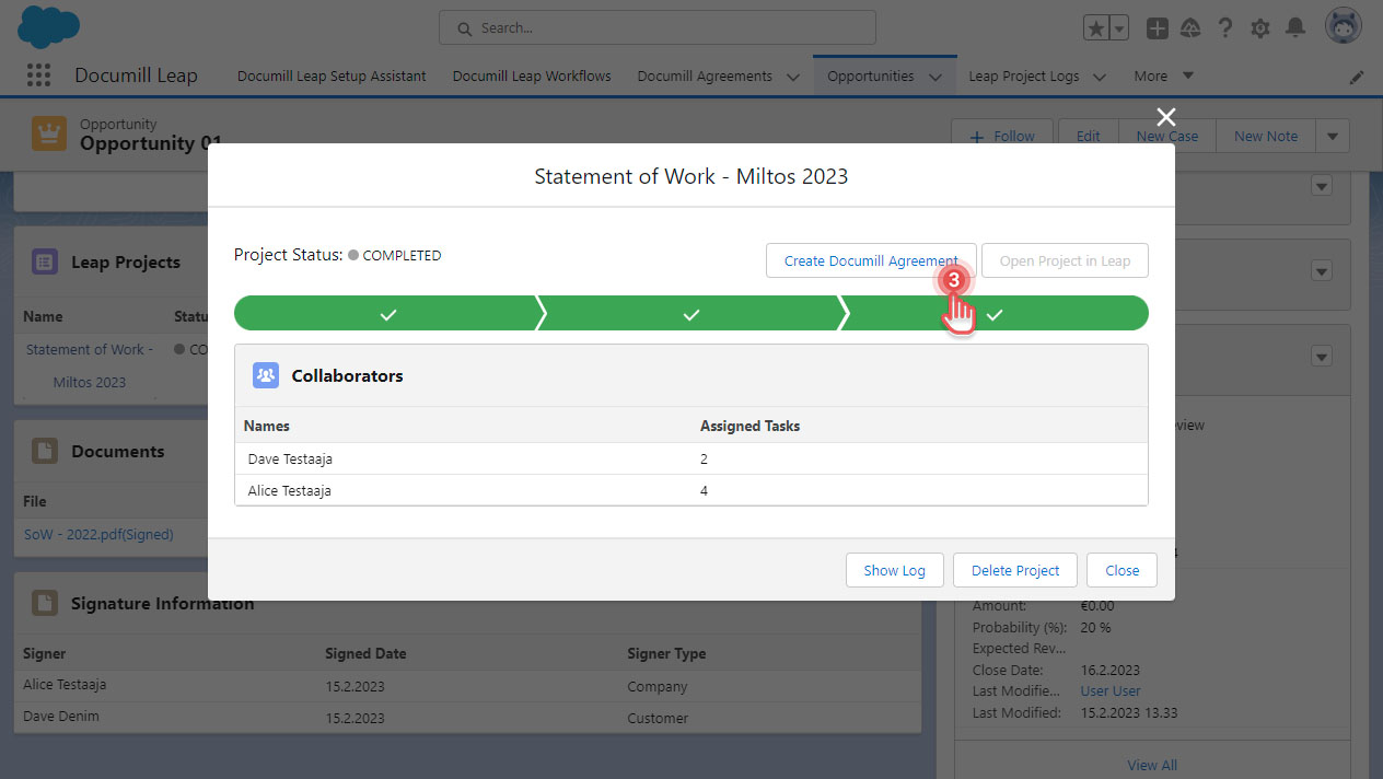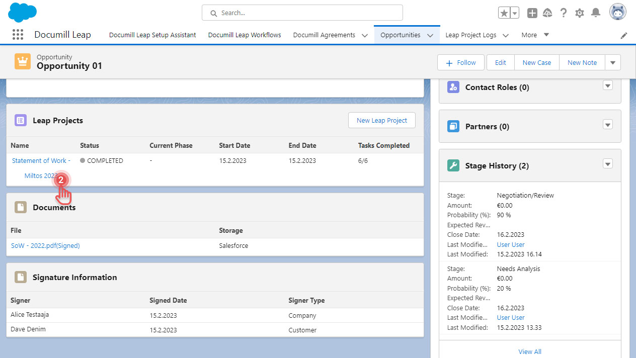 1. Open the Salesforce Record where the Leap Project was prepared.