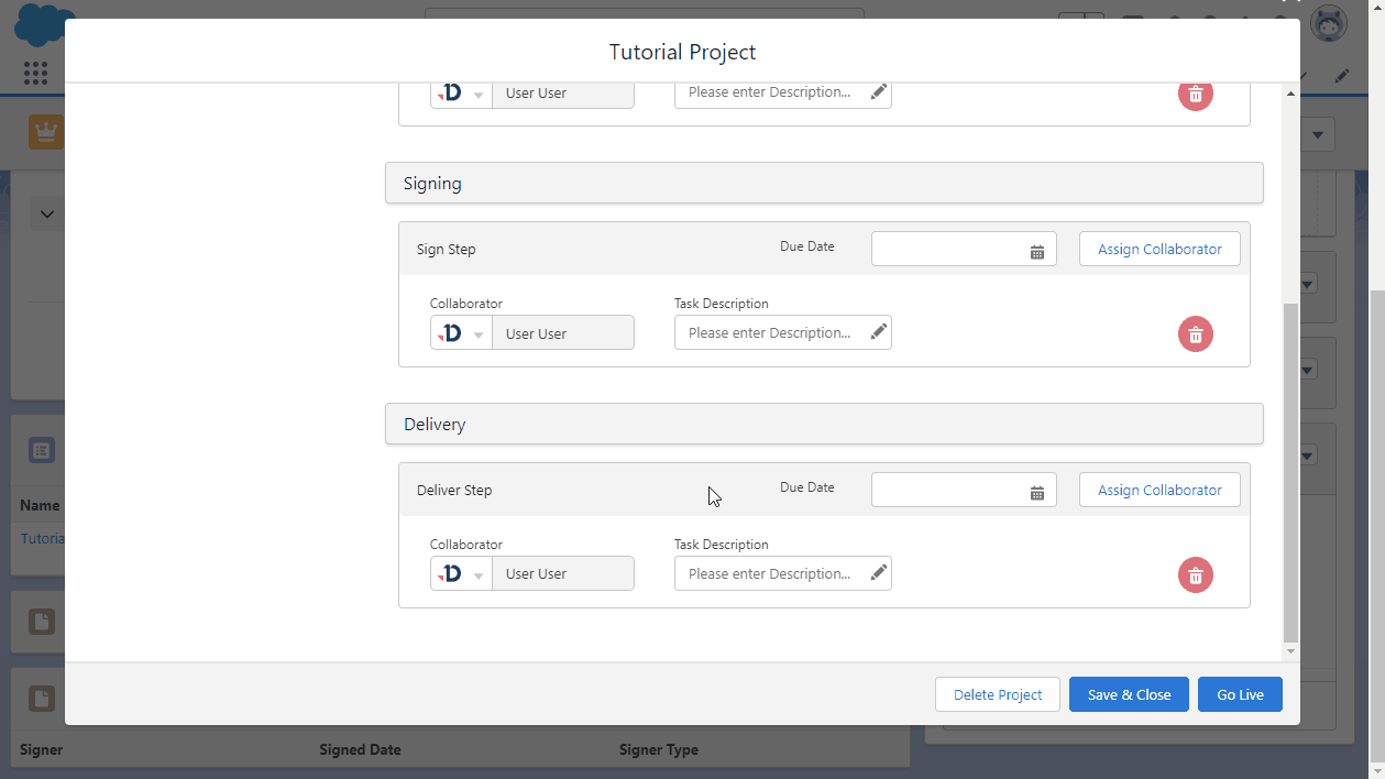 Once all Step boxes are assigned with Collaborators, your project is ready to go Live.