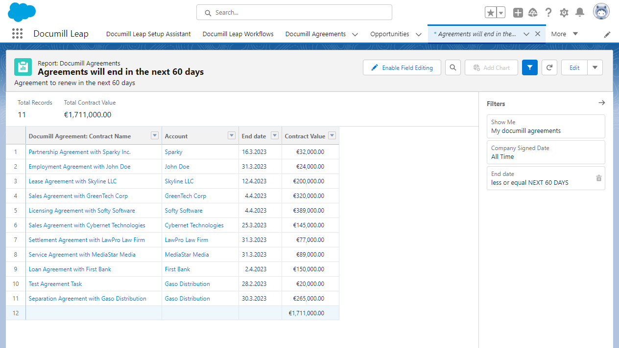 A Documill Agreement is similar to any other Salesforce object. That means you could use it with other Salesforce features.