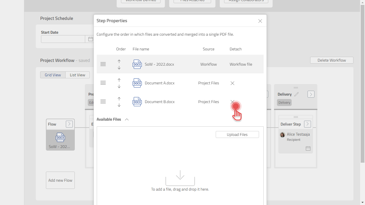 A File that is attached to a Flow cannot be detached from the Combine Step.