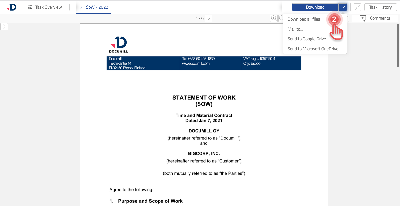 You may also receive multiple Files in your Recipient Task. To download all the Files as a .zip archive, follow these steps:
