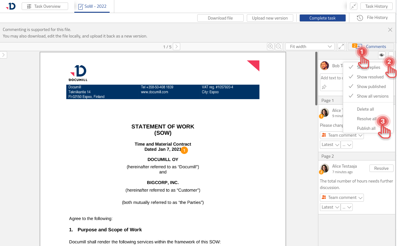 1. Click [Comments] button to open the side pane.