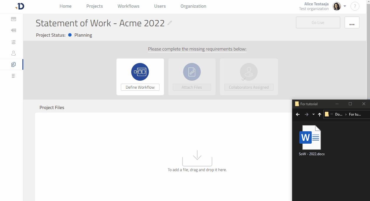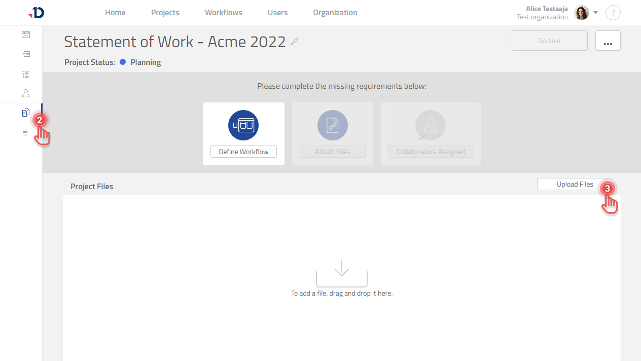 3b. Alternatively, drag the file into the “Project Files” box.