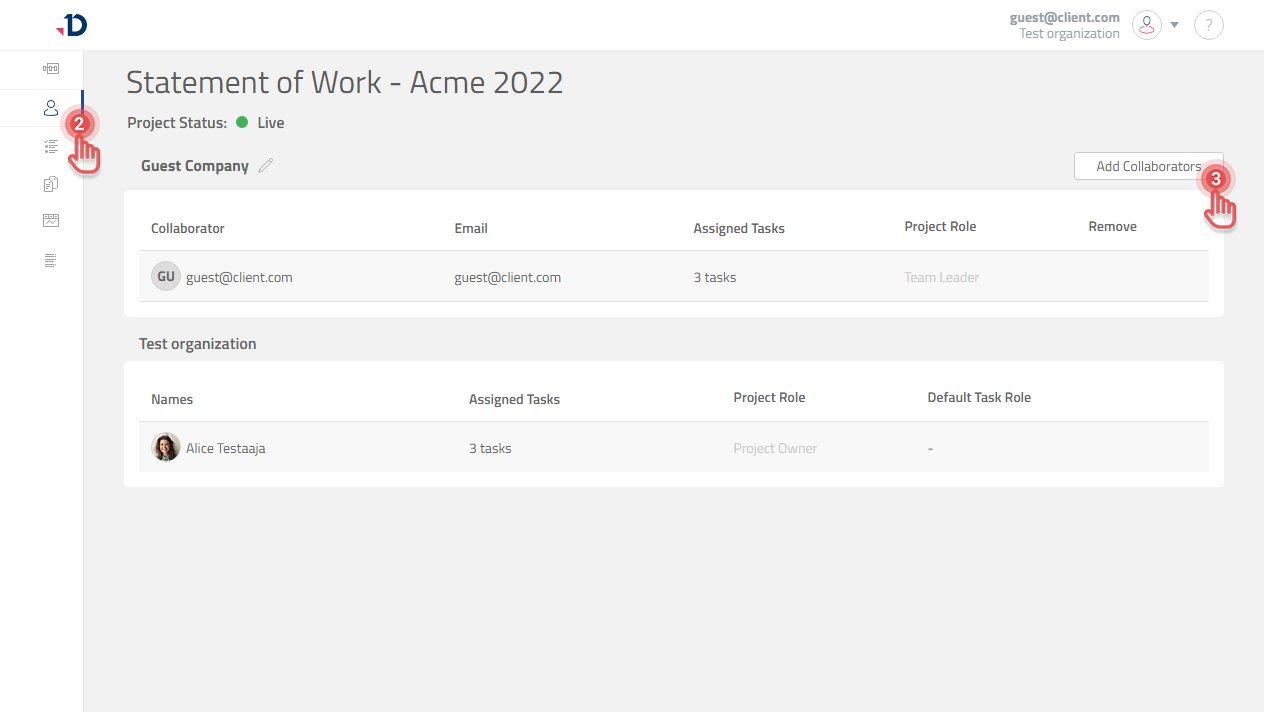 2. Click [Collaborators] tab on the left panel.