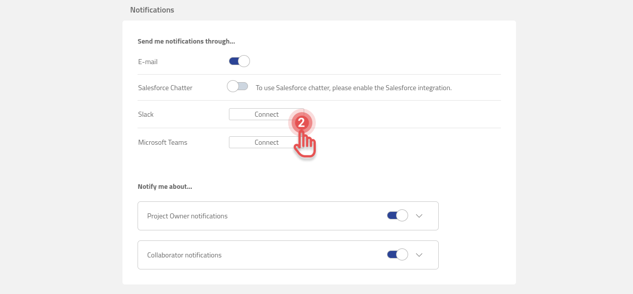 2. Click [Connect] button next to Slack in the Notifications section.