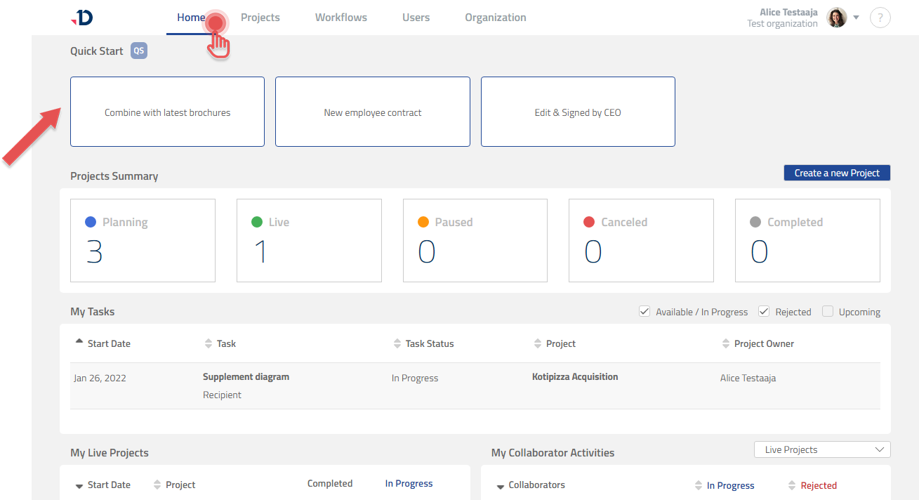 If you need to quickly prepare a document using a straight-forward process, you can create a new Quick Start Project: