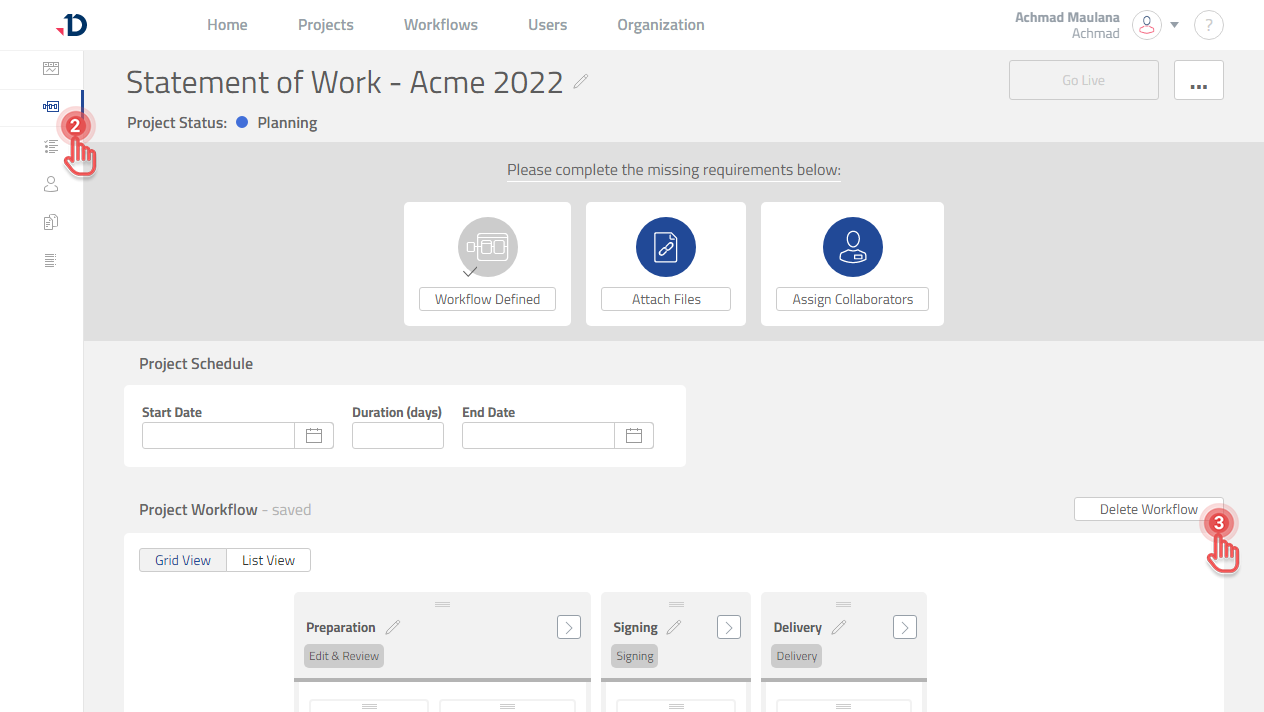 If you need to rebuild the Workflow of your Project, you can delete the Workflow: