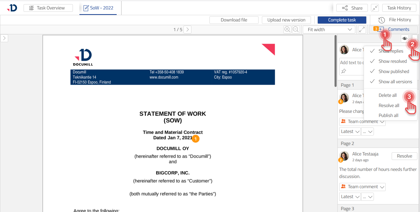 1. Click [Comments] button to open the side pane.