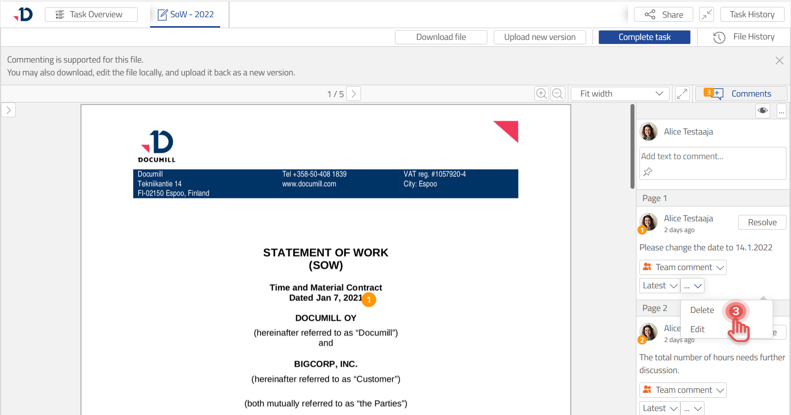 Delete Comments in Document Viewer