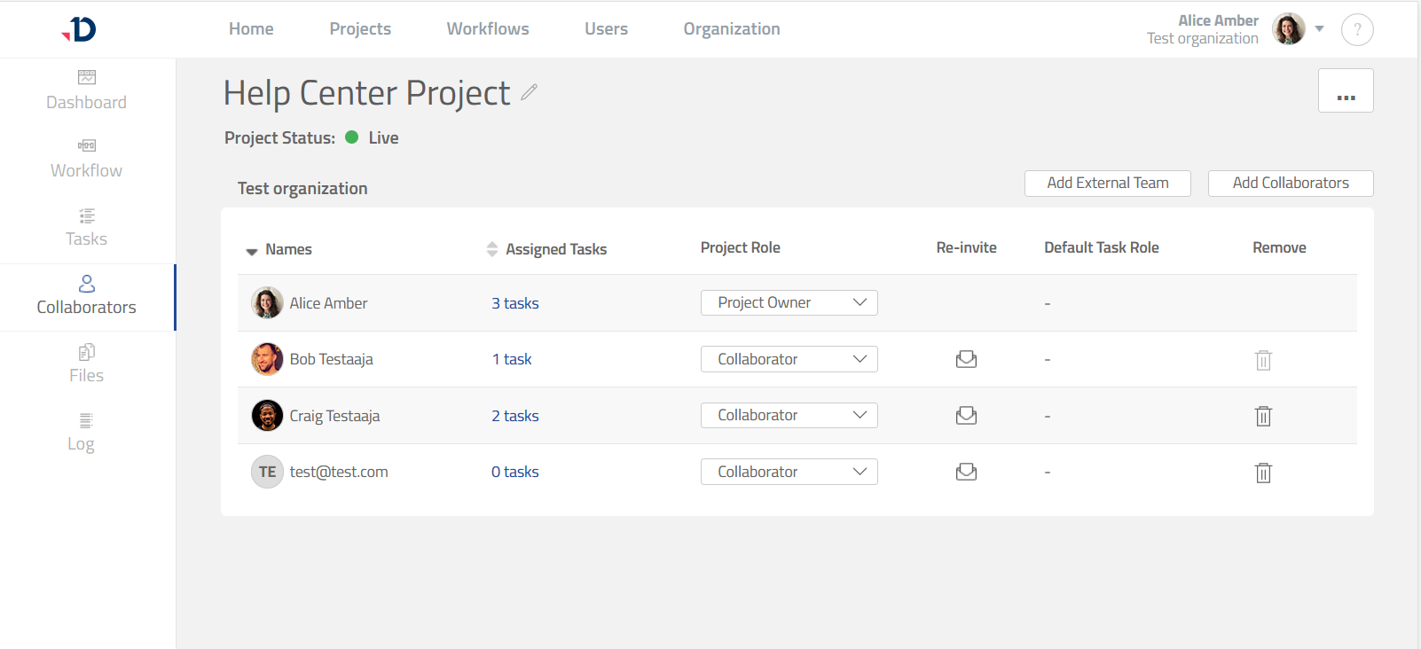 More information on how to manage Collaborators in a Project is available at Manage Collaborators.
