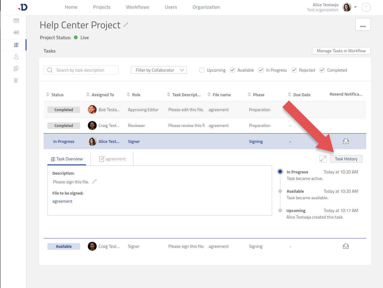 A Task is automatically created when a Project Owner assigns a Collaborator to a Step. The Task to be done by a Collaborator is determined by the Task role. Learn more about each Task role here: Task Roles.