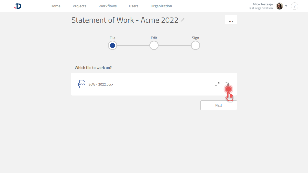 A File cannot be deleted anymore once a Quick Start Project is started.