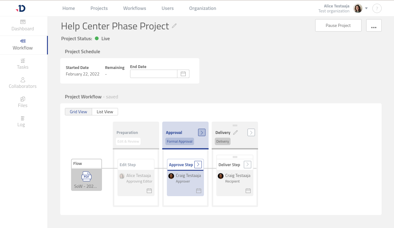 A Phase in a Workflow is like a milestone that defines what Steps must be completed to move a Project forward. Each Phase contains Steps corresponding to the Phase type. A Phase may contain one or multiple Steps.