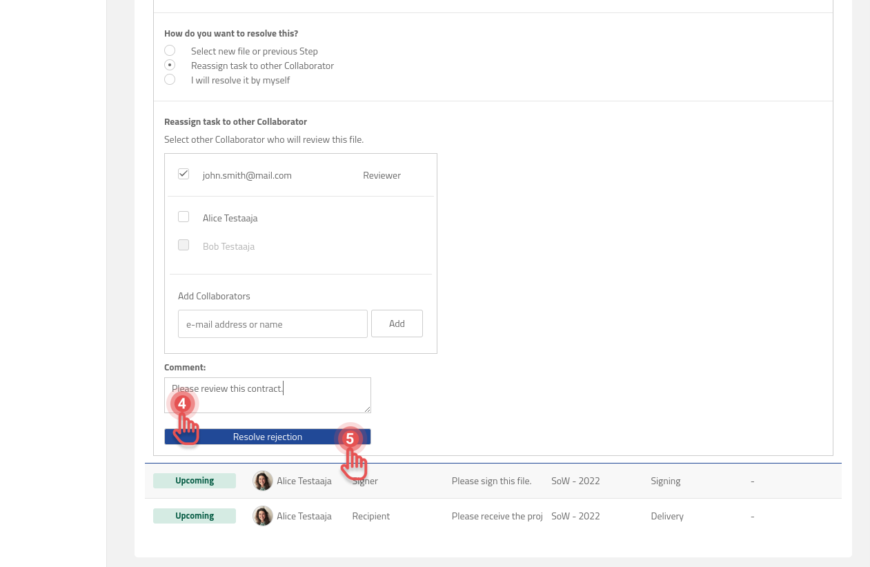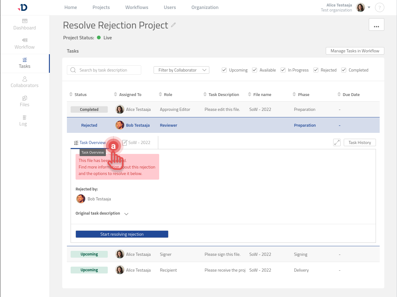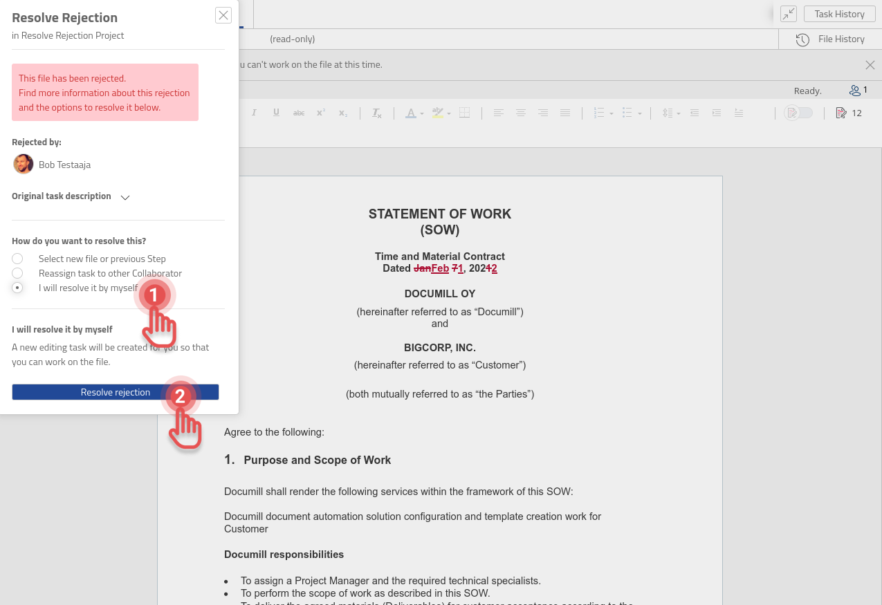 If a Collaborator has requested changes on a File, it is Project Owner’s Task to take action and resolve the request.