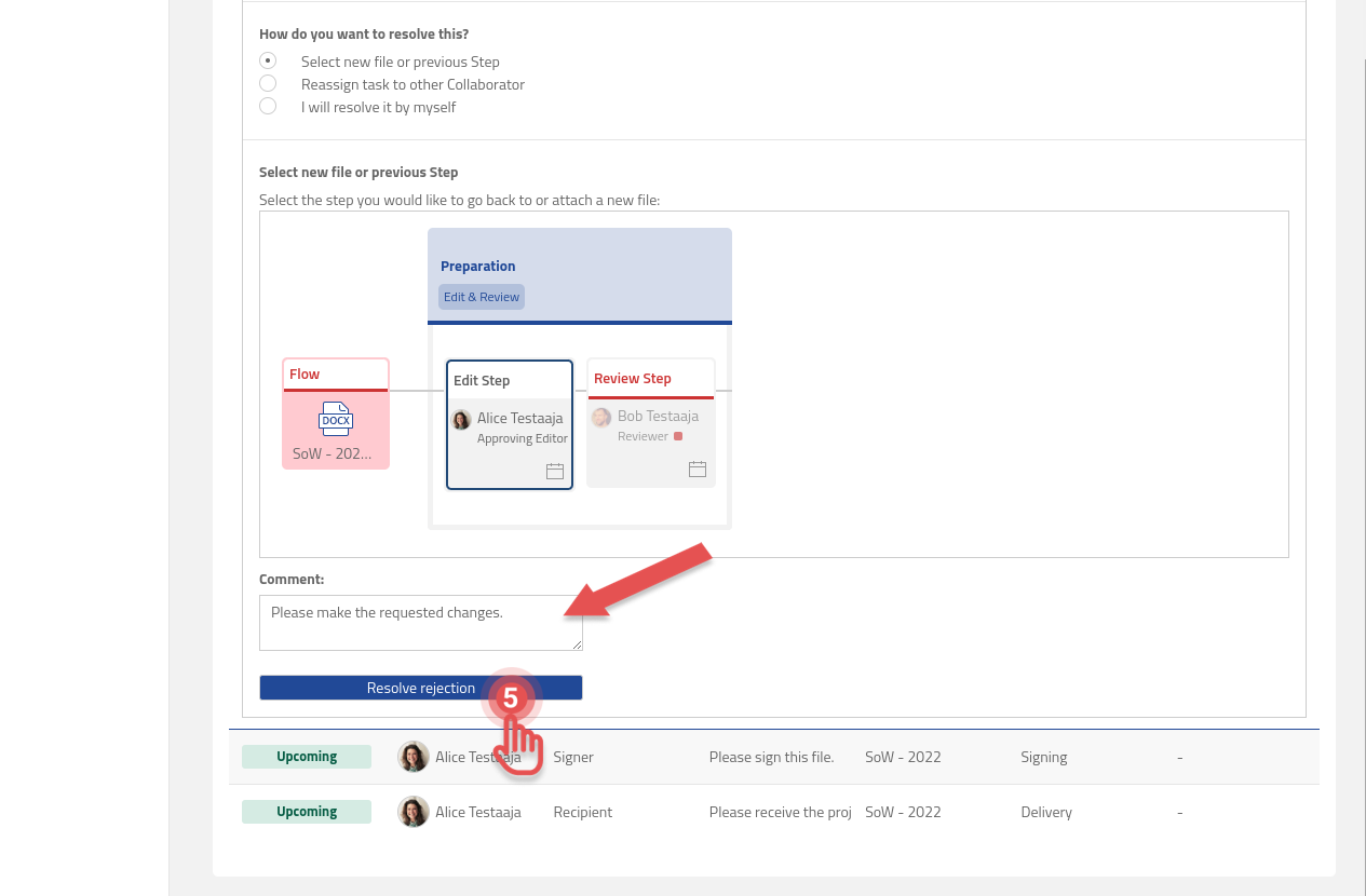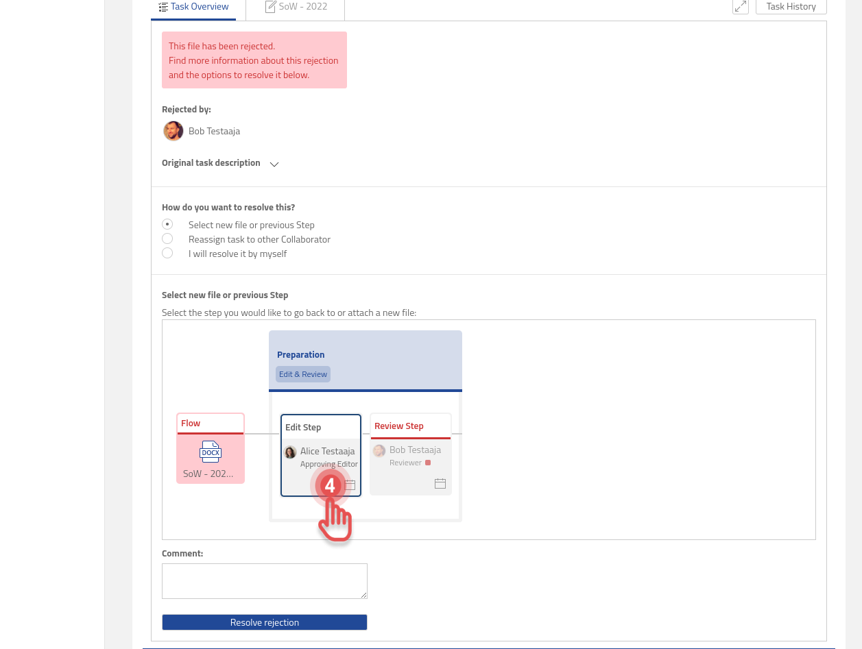4. Select a previous step if you want to return the File to any Step in the workflow.