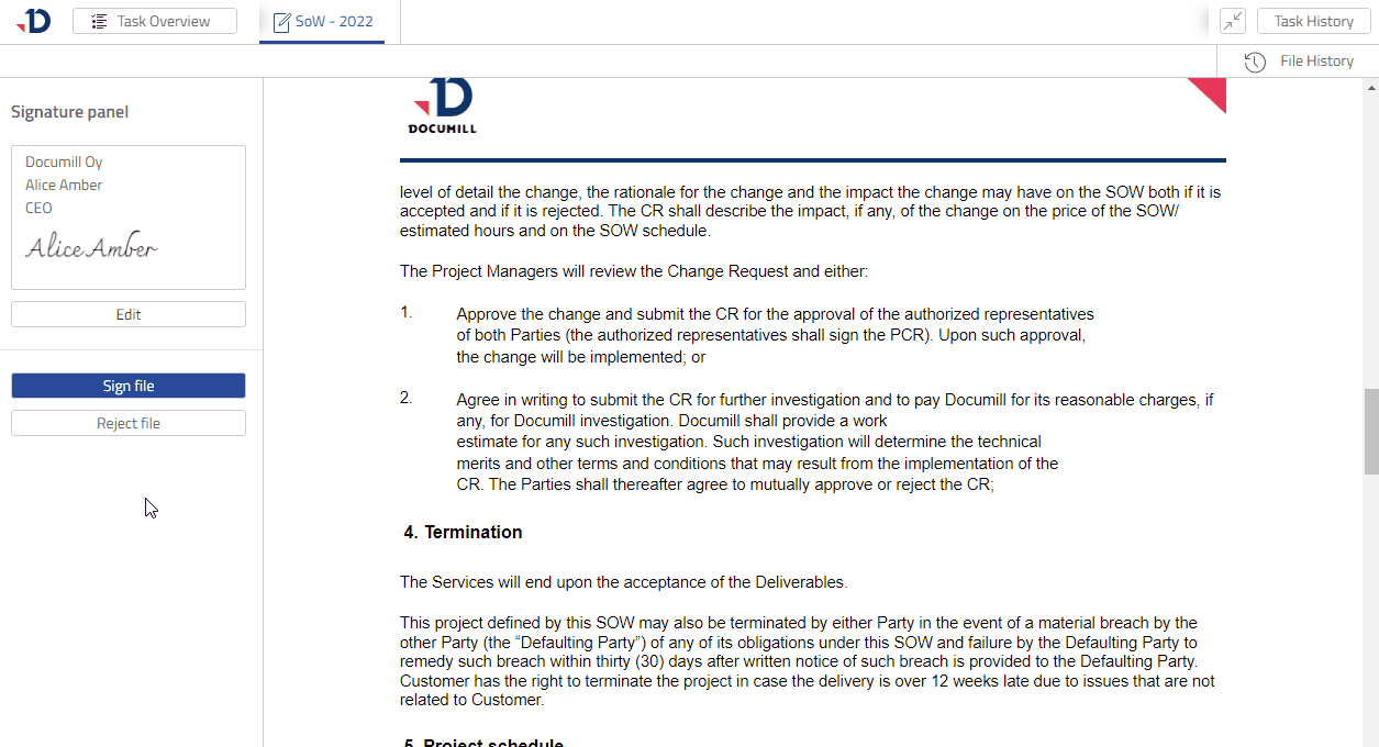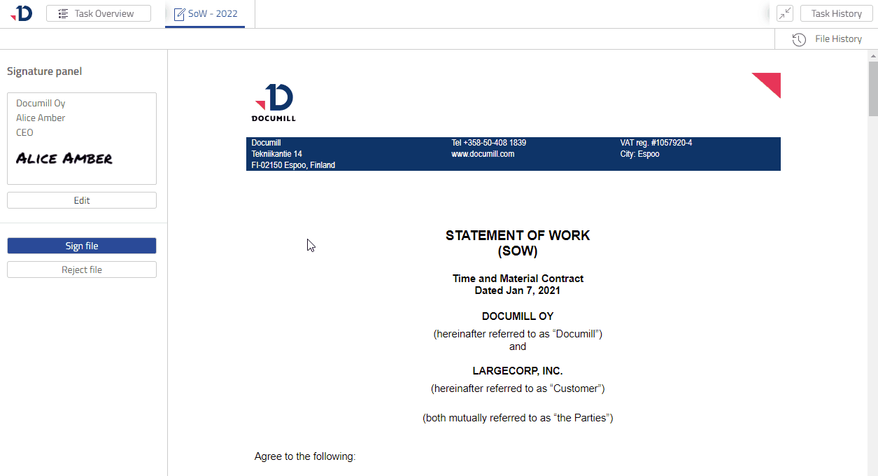 In this tutorial, you will learn how to open a Signer Task that was prepared in Create your first project tutorial. As a Signer, you are expected to review a file and decide whether to sign the file or reject it.